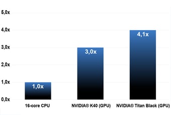 で計算した結果が右のグラフです。CPUと比較してGPUは3~5倍の圧倒的な速度で計算することが可能です。